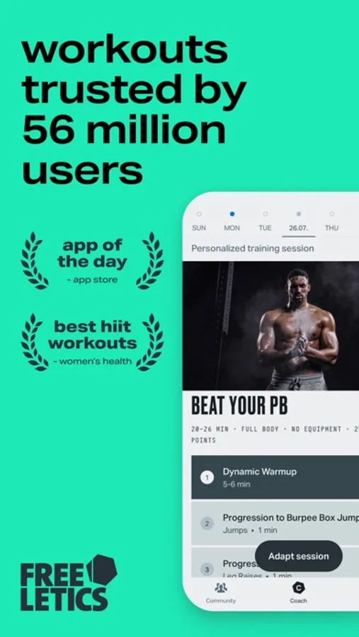 The free version of the app contains 20 HIIT bodyweight workouts, 25 exercises, 20 audio sessions, workout spots and a community of millions. If you want to set yourself up for long-term success with the guidance of a personal trainer every step of the way, you can use the Freeletics Coach with a 14-day money back guarantee.