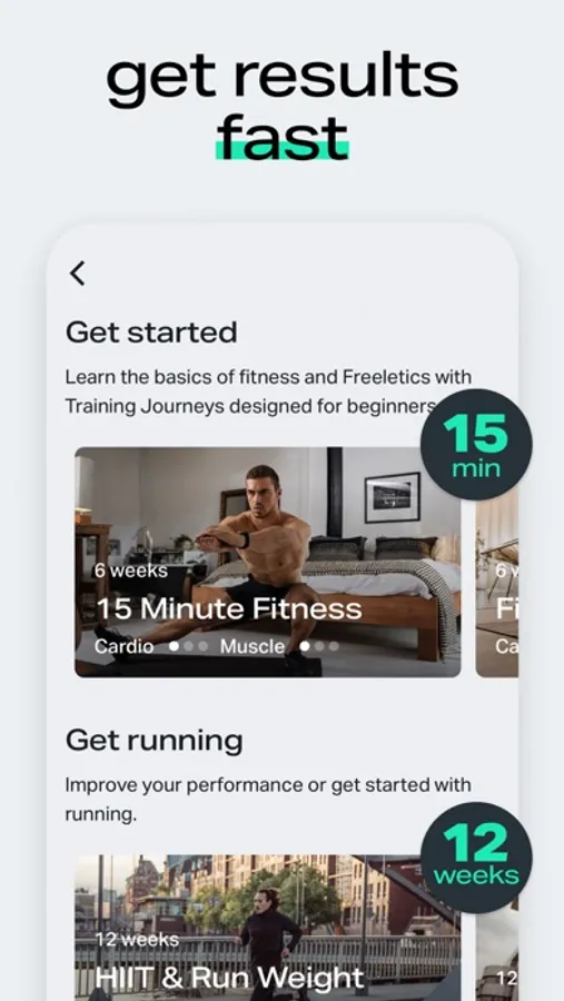 • Choose your workout style. Whether it’s running, bodyweight HIIT or weights in the gym - or a combination of these - there’s a Training Journey for you. Fitness will never be boring again.