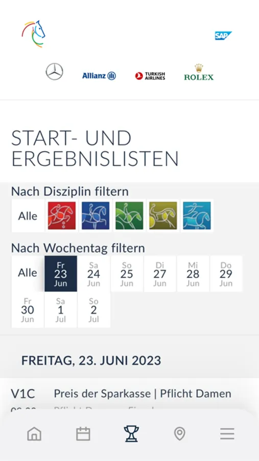 - My Events: Compile your individual event day yourself and save your favorite competitions on your home screen. This way you will never miss a competition start.