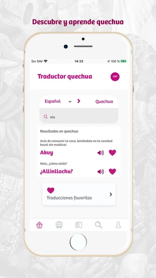 Traductor: Podrás traducir más de 2700 palabras de español a quechua e inglés a quechua.