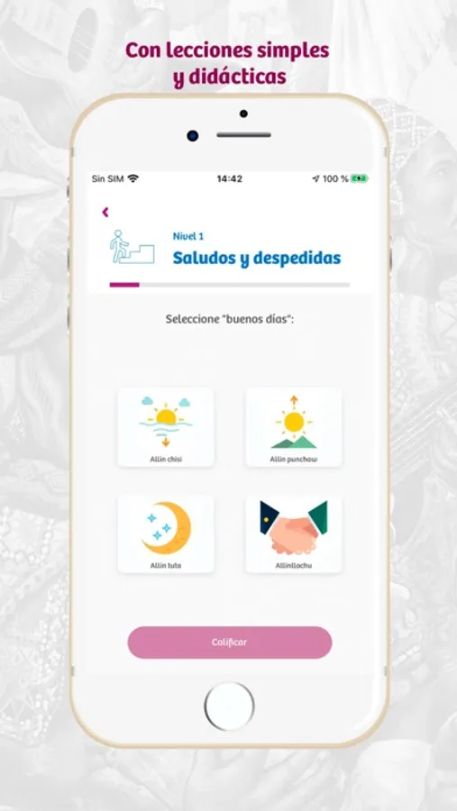 Aprendizaje: Tenemos 3 niveles de aprendizaje cada uno con diversos temas. Cada tema será presentado de forma lúdica a través de una secuencia de preguntas y respuestas donde se combinarán los sentidos visuales y auditivos a través de la escritura, audios e imágenes representativas.