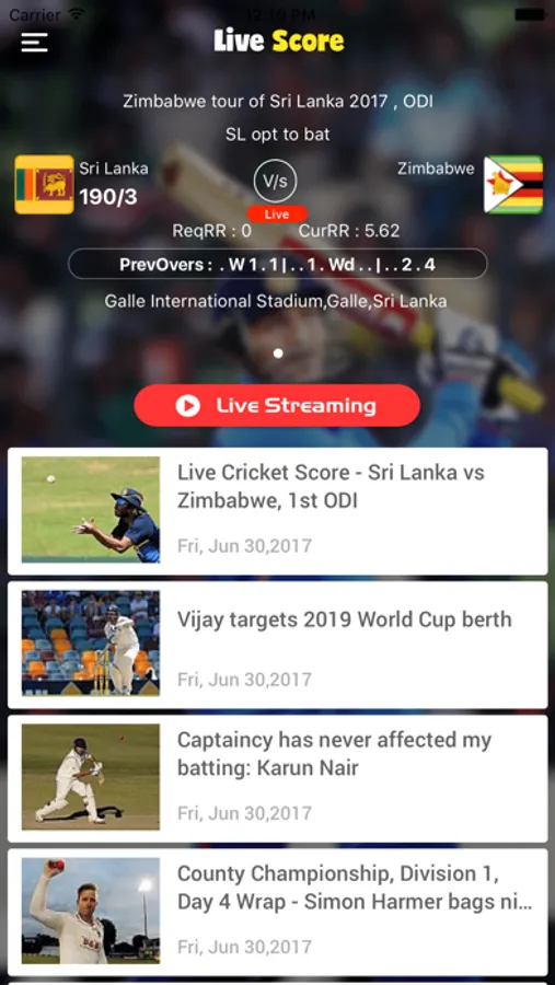 Live score for Cricket is provide a very fast & accurate live cricket score.