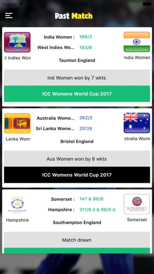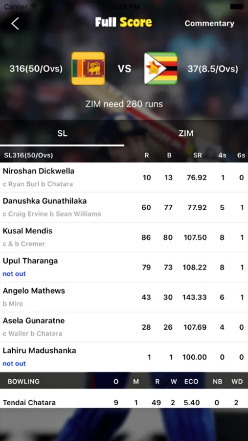 The most comprehensive cricket LIVE score visualization app for IOS devices. Country matches, such as Australia, India, England, Pakistan, South Africa, Sri Lanka, Indian IPL, ODI matches, Champions Trophy, All international T20, ODI, Twenty20, IT20 and Test Cricket matches can be viewed extensively in this app that provides near real-time feeds.. Enjoy Cricket!.