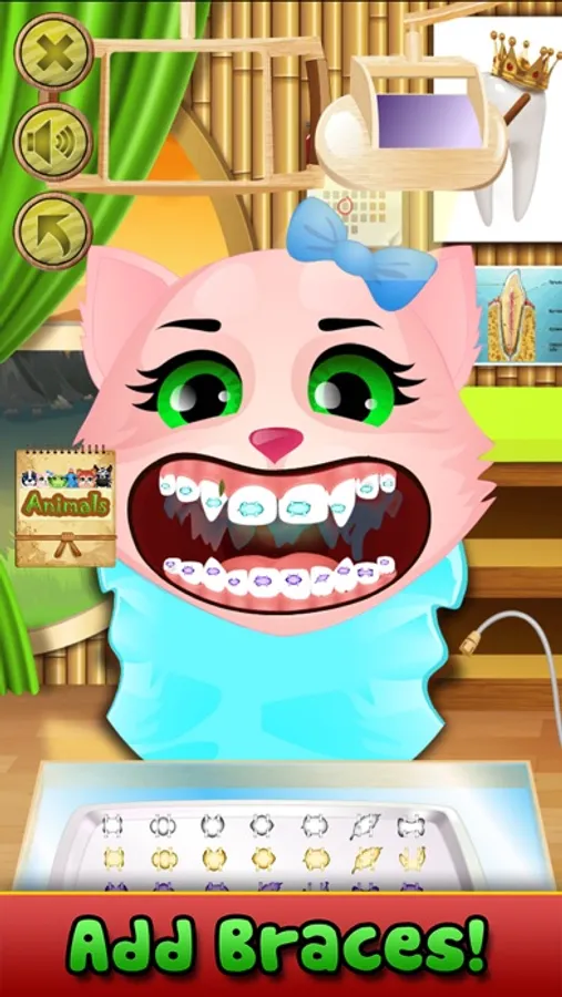 The little baby animals are always eating lots of food & candy but they are not always brushing and flossing their teeth. Can you help them clean up? Fix the cavities & clean the teeth so they look pearly white! Remember to add the braces!