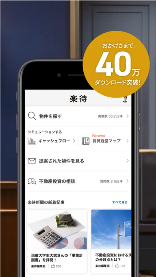 総合情報アプリ「楽待」で不動産投資をもっと便利に。
