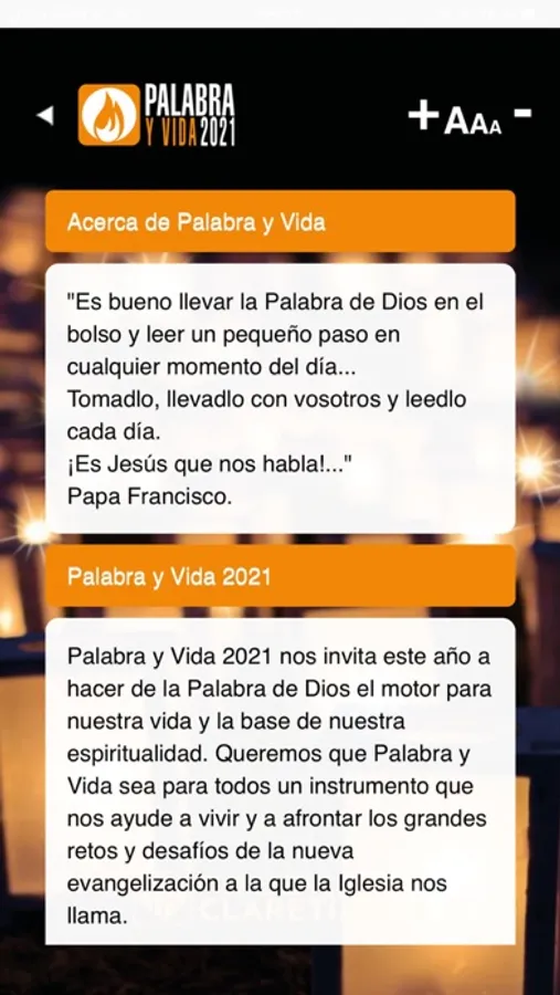 Versión Mobile del conocido proyecto Palabra y Vida (el evangelio comentado cada día). El evangelio diario más popular y conocido por los católicos de habla española. La versión 2023 incluye sugerentes comentarios diarios a la Palabra de Dios que se escuchan en la liturgia católica y en la eucaristía cotidiana. Destaca en Palabra y Vida 2023 sus referencias al calendario litúrgico y el subsidio de oraciones básicas del cristiano.