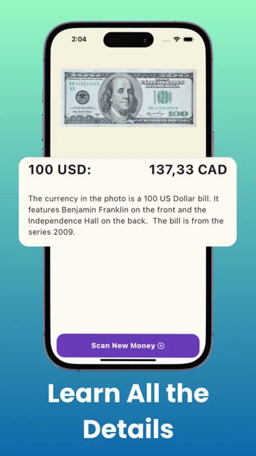 • Up-to-Date Data: AI Banknote Identifier is constantly updated with the latest exchange rates and banknote information. You can trust that the data provided is accurate and current, giving you peace of mind and reliable information at your fingertips.