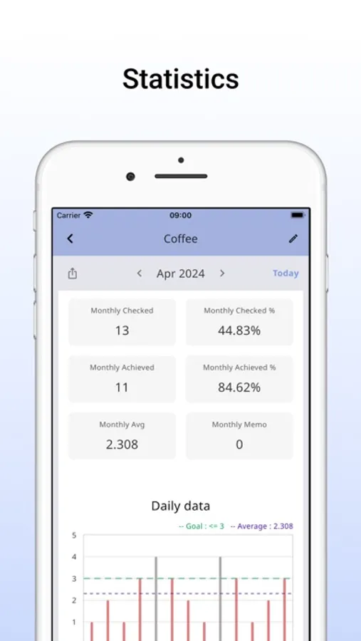 Set weekly/monthly goals and track your achievement rate.