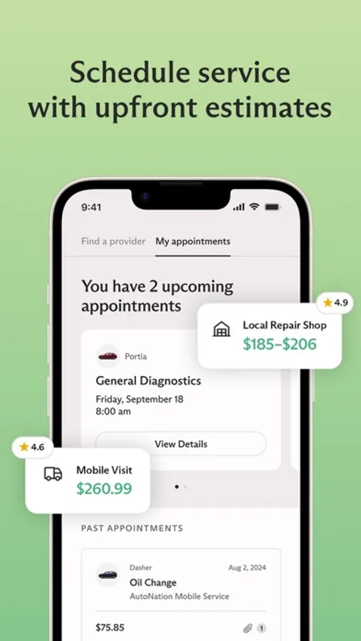 Take the guesswork out of auto care: Receive maintenance recommendations, book service with trusted local providers, and store service history, all in one place.