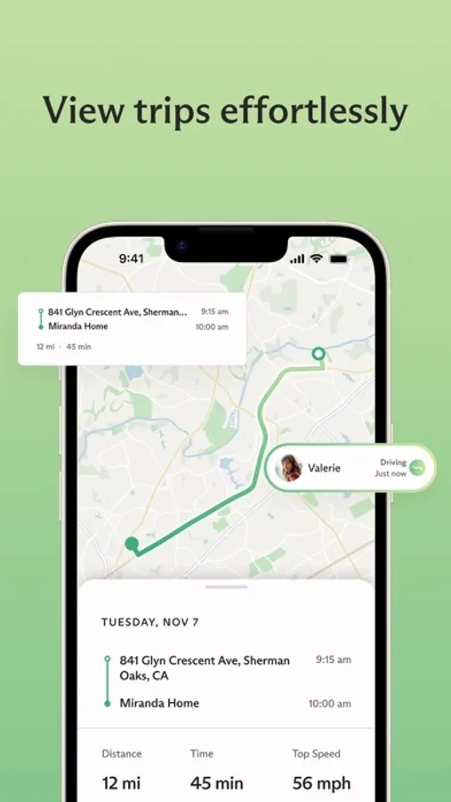 Share updates while on the move: Real-time location sharing, trip history and helpful insights.
