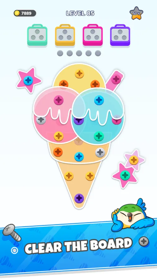 Earn points and unlock rewards as you advance, motivating you to solve screw puzzles effectively and achieve higher scores!