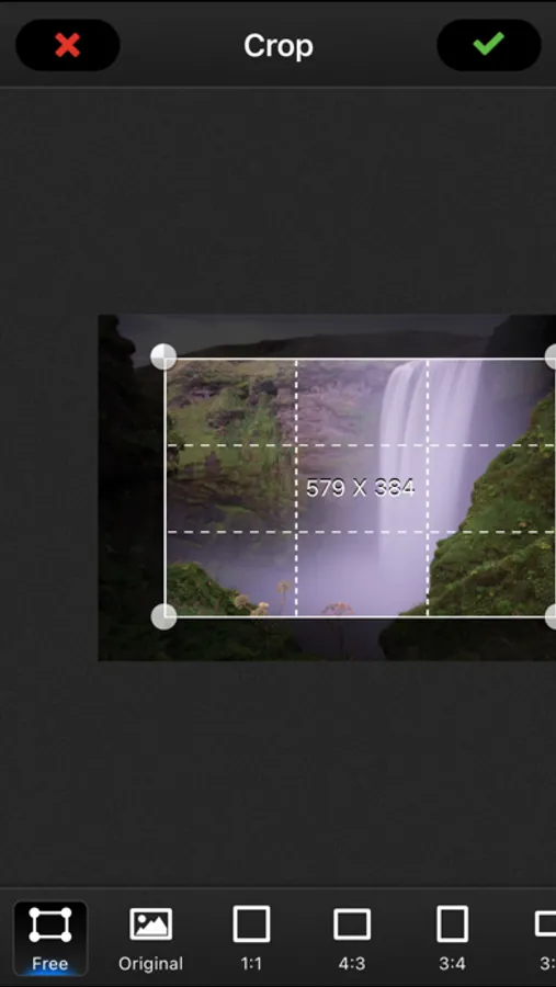 You can crop the pictures freely according to your need and the Free iPhone/iPad/iPod touch Photo Editor also provides 1:1, 4:3, 3:4, 3:2, 2:3, 16:9 and 9:16 size for you.