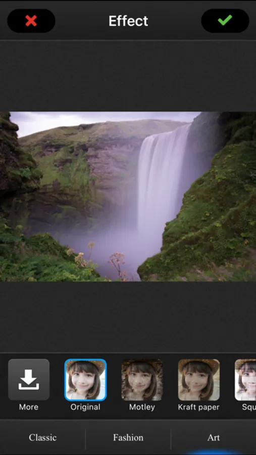 Classic, fashion and artistic three photo effect styles can be selected. A large variety of popular stylized effects like rock, gothic,auto contrast, auto tone, blur, sharpen, black & white high contrast styles to modify your photos.