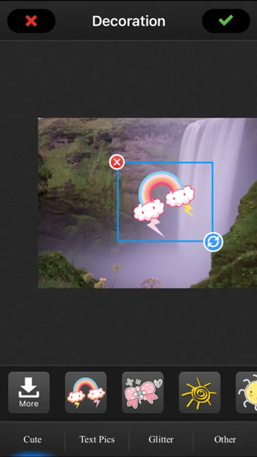 Apply fun different styles of picture, characters and other ornament effects to your photo.