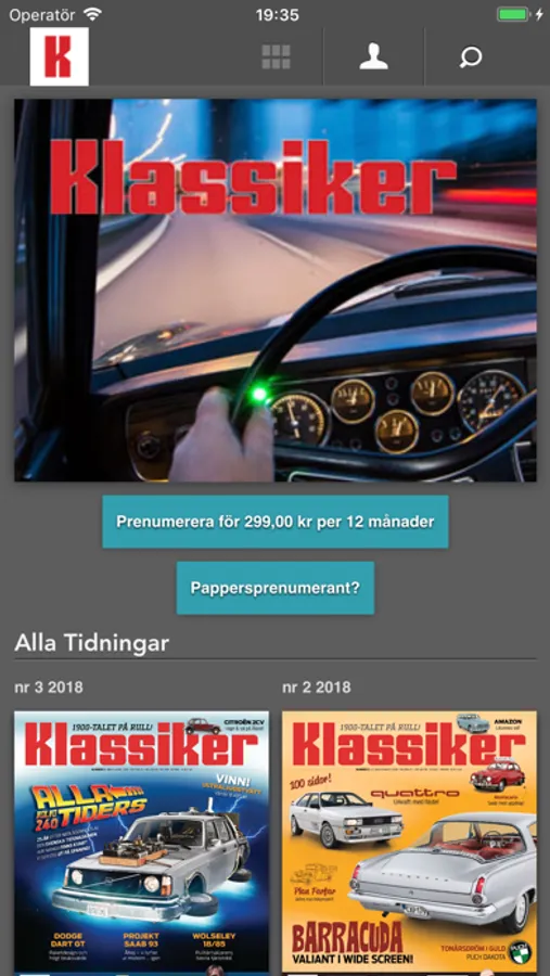 Klassiker är den tidning om klassiska bilar, mopeder och motorcyklar som ökat mest de senaste åren. Klassikers duktiga skribenter och fotografer gör ständigt sitt yttersta för att ge dig en tidningsupplevelse utöver det vanliga. Läs Klassiker och låt dig inspireras du också!