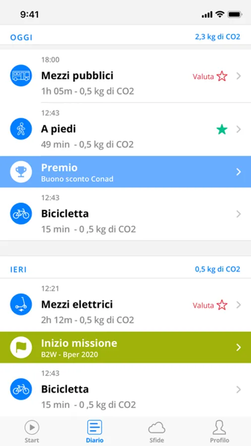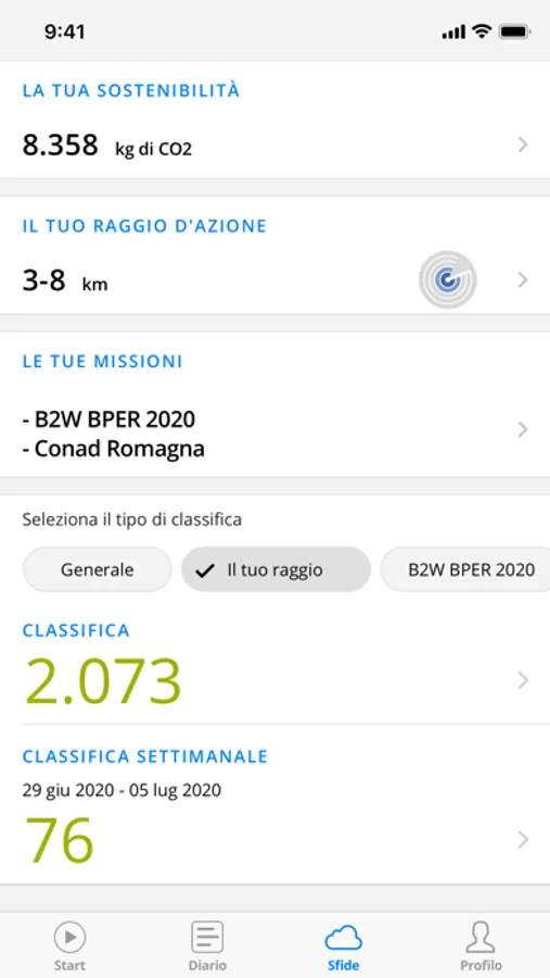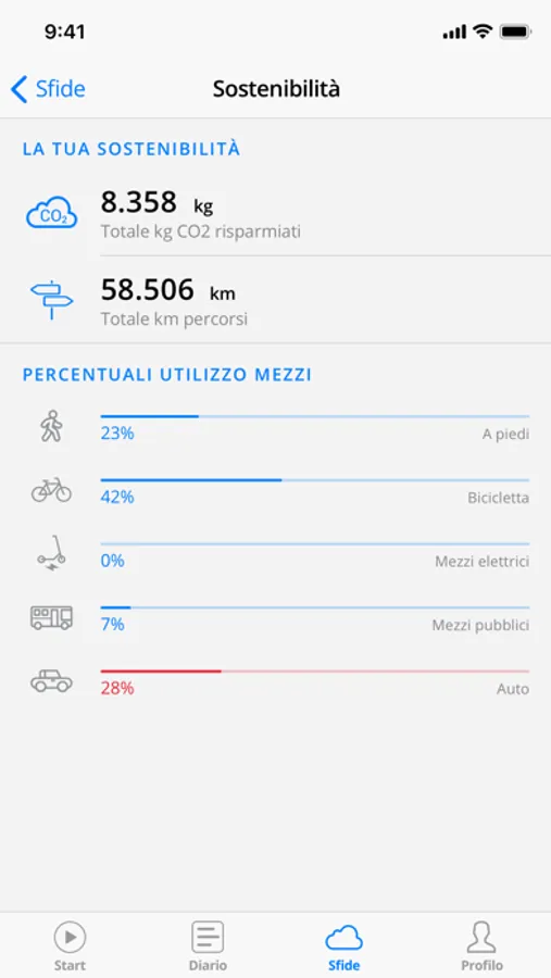 The app automatically records your journeys and classifies them as sustainable (biking, walking, public transport) or unsustainable (driving).