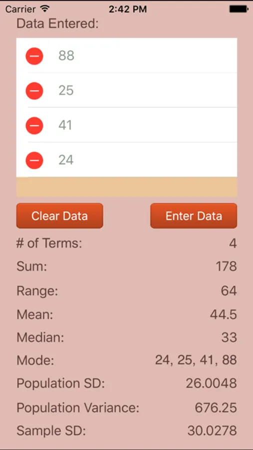 In basic statistics, students are required to calculate different statistical measures of a set of numbers. With this app, the following statistical measures will be made available to you after you enter a set of numbers: