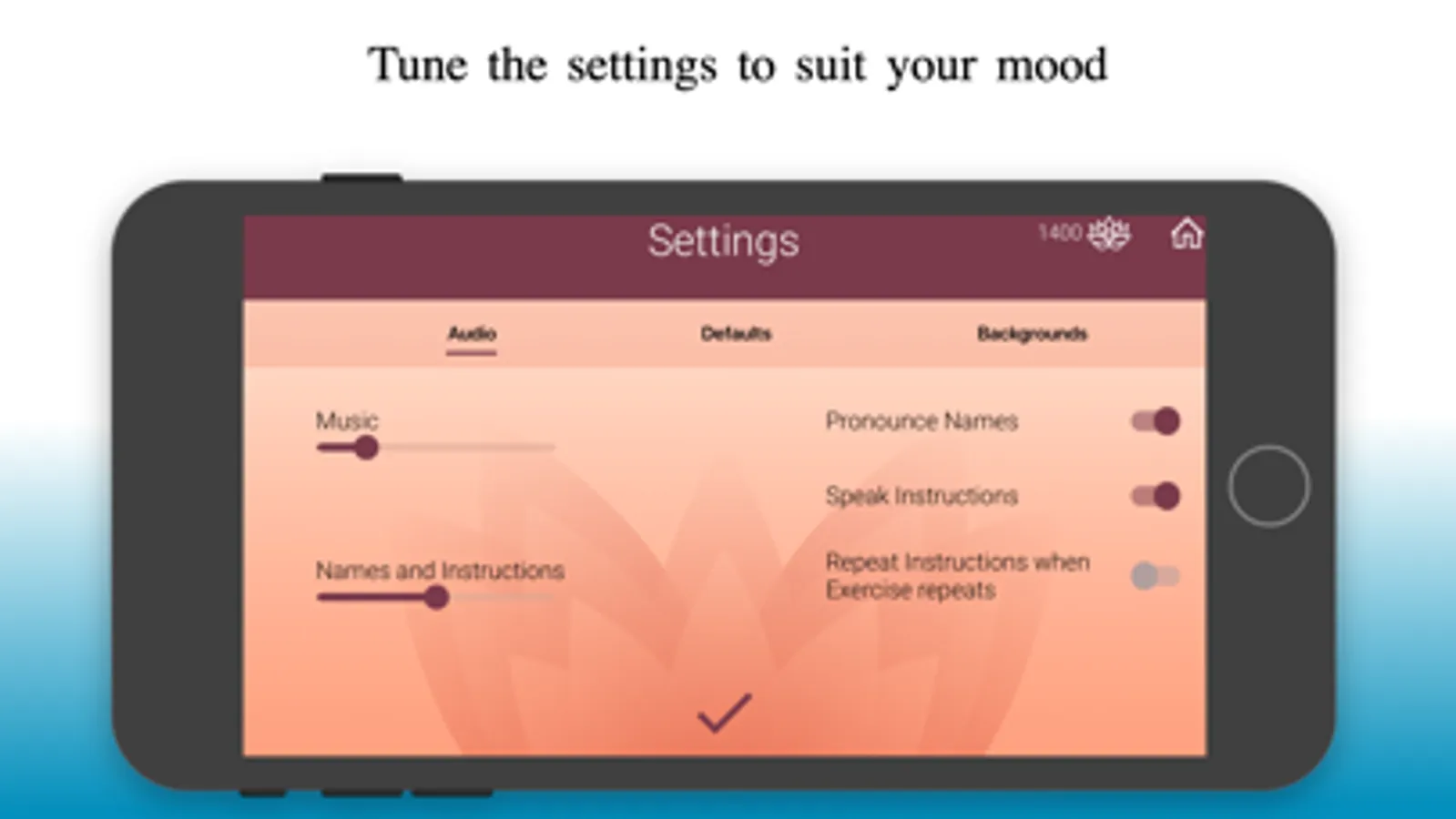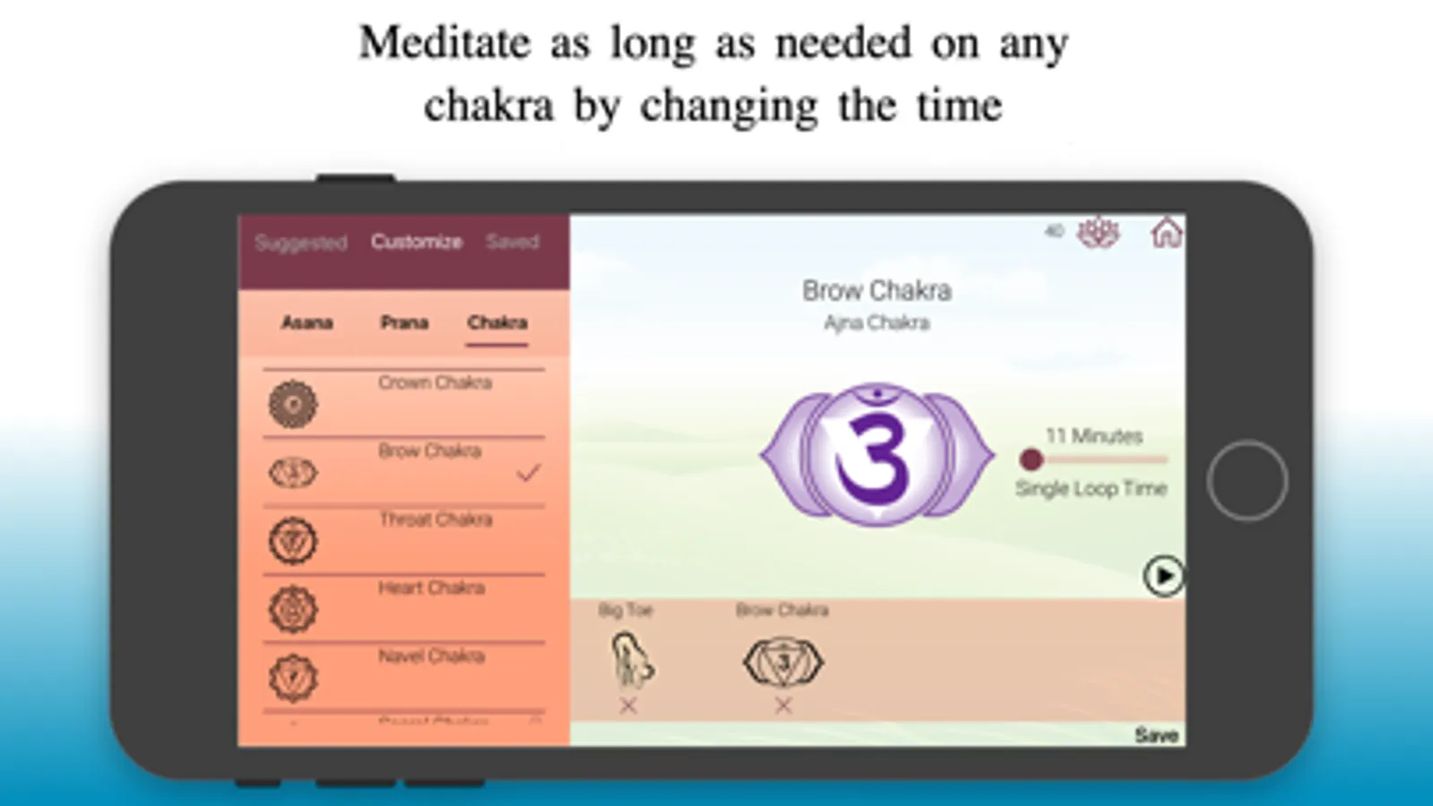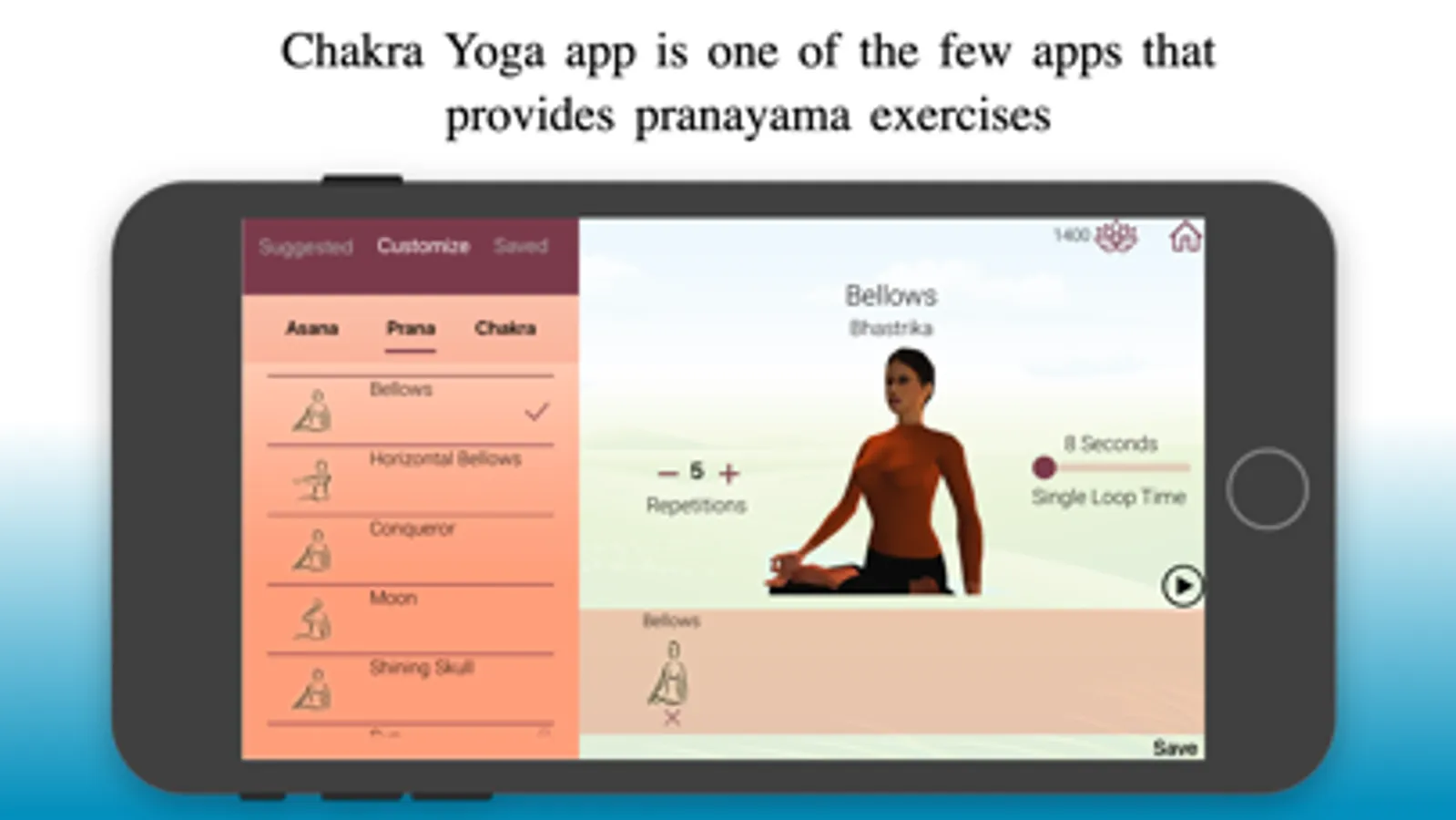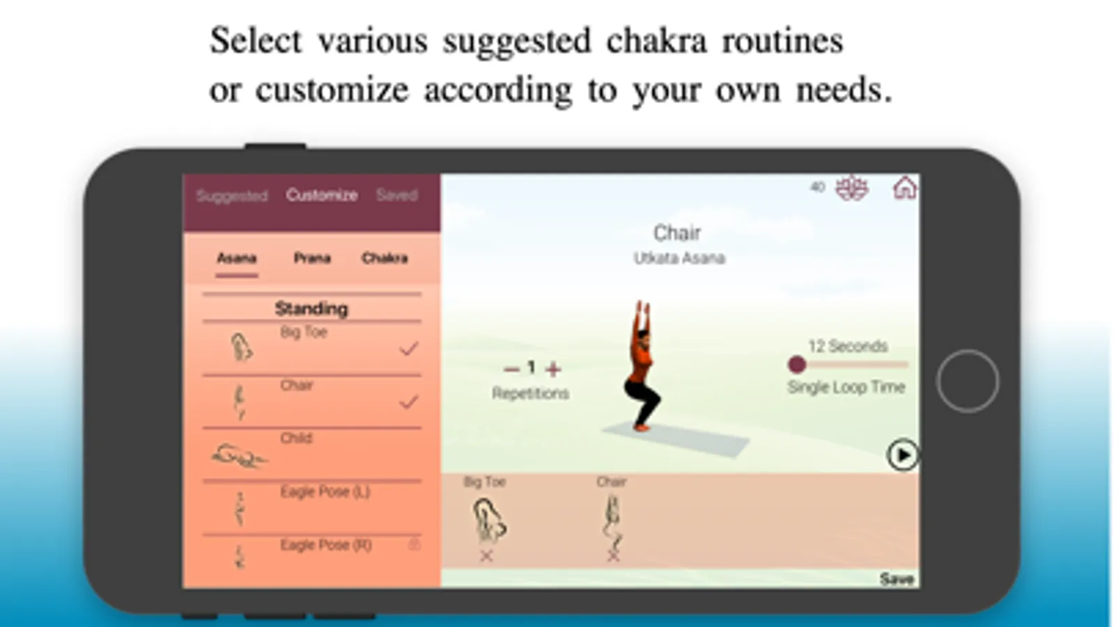 - Customize every Asana, Prana or Chakra Meditation with your own repetitions and time settings.