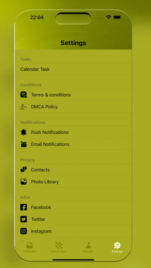 • Pick a background from a beautiful selection of automagically suggested colors and highly curated color palettes