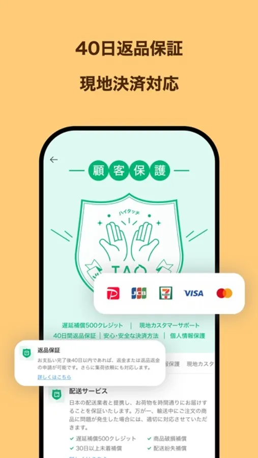 TAOの特徴は、使いやすさだけではありません。ユーザーの声を大切にしながら、日々サービスの改善に取り組んでいます。商品の購入からお届けまで、何かご不明点があれば専門のサポートチームが丁寧に対応いたします。安心してご利用いただけるよう、細部まで配慮した運営を心がけています。