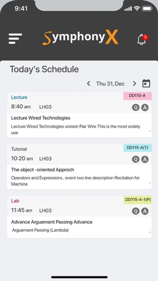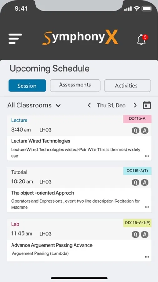 SymphonyX provides a seamless interface for interactions between the faculty and students of each course. All academic activities such as labs and tutorials are managed by symphonyX, which encourages further interactions between faculty and students with discussion forums.