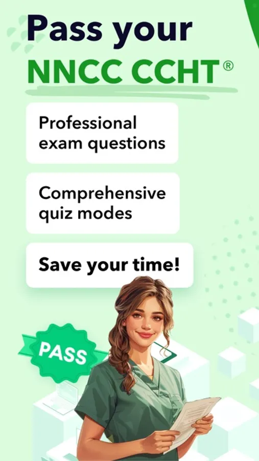 Helping you pass your NNCC CCHT certification exam is our primary goal. Study and prepare for the exam with a professional mobile app that will boost your confidence in passing the exam on the first try!
