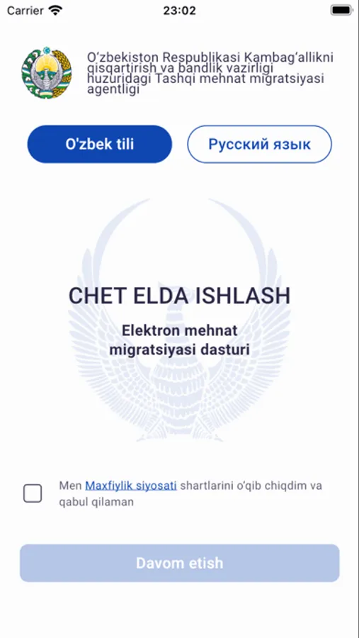 Dastur O‘zbekiston Respublikasi Vazirlar Mahkamasi huzuridagi Migratsiya agentligi tomonidan ishlab chiqilgan bo‘lib, fuqarolarimizga ish topishda va chet elda mehnat qilish imkoniyatlarini kengaytirishda ko‘maklashadi. Dasturdan foydalanish oson va qulay, barcha funksiyalar bir joyda jamlangan.