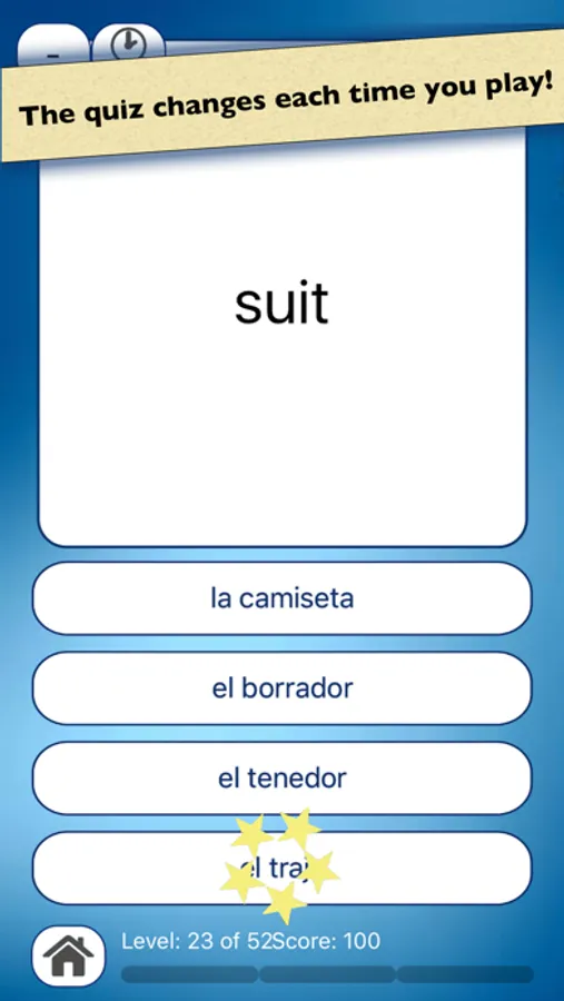Practicing the questions in this app not only teaches important Spanish vocabulary, but also makes it easier to ace the corresponding game on the peace-of-mind learn & play sites Miacademy.co, Always-Icecream.com and Clever-Dragons.com.