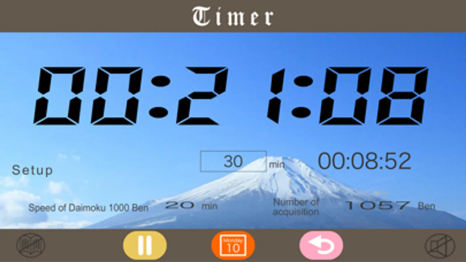 ・It is a double timer with a cumulative timer and a countdown timer with an alarm. If you use it together with the voice of the "Daimoku", you can chanting the "Daimoku" with a good rhythm.