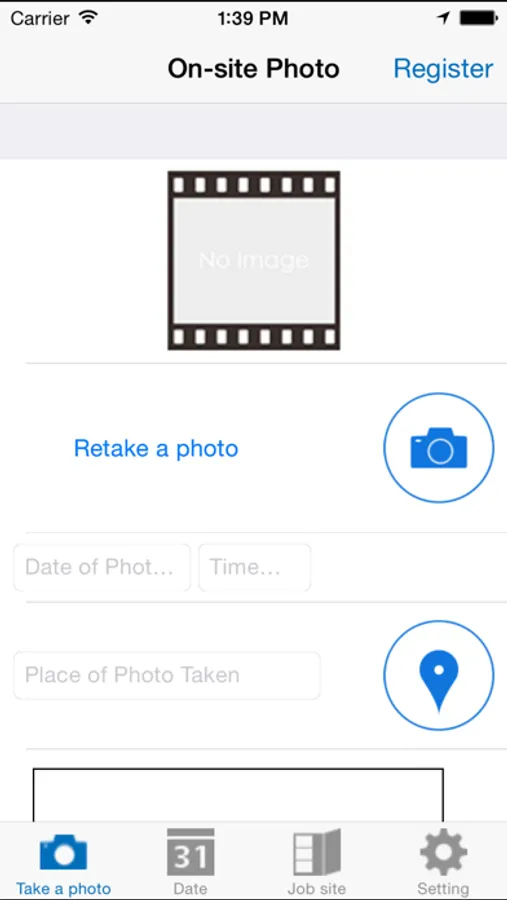 You enter a name of a site and can take a maximum of three photos by touching "Camera" button.