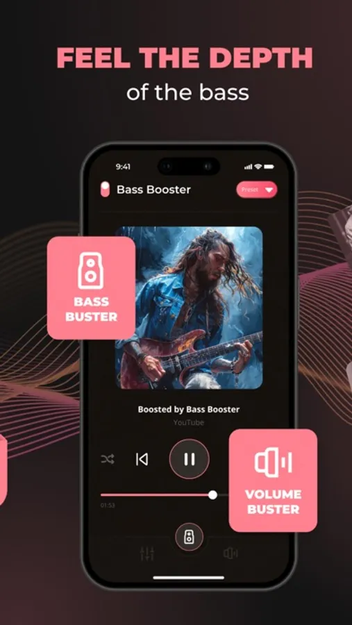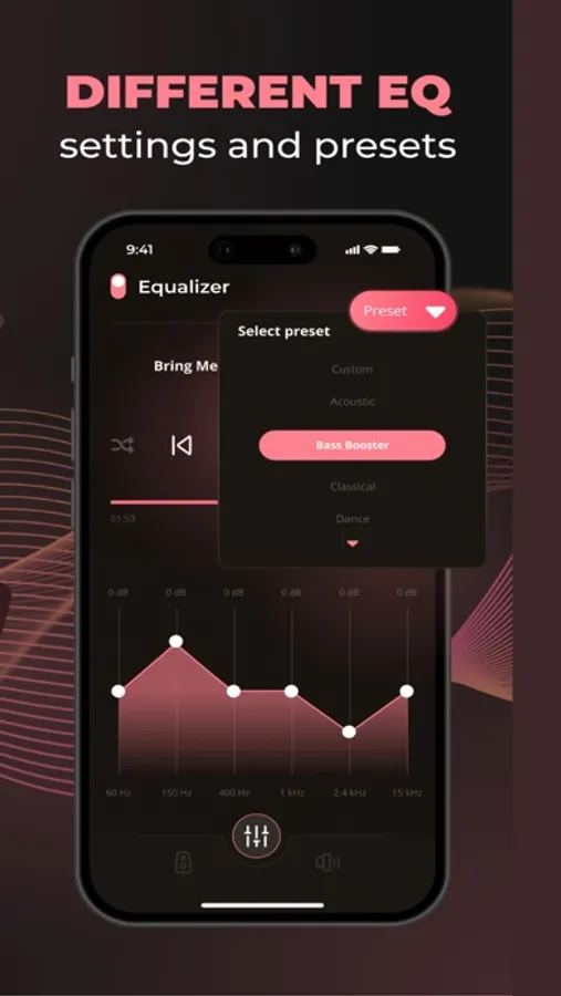 Our app features an advanced bass booster that lets you amplify low frequencies for a richer, deeper sound. Enjoy crystal-clear audio with our state-of-the-art sound enhancement technology. Whether you're listening to your favorite tracks or exploring new music, our product guarantees the highest audio quality possible.