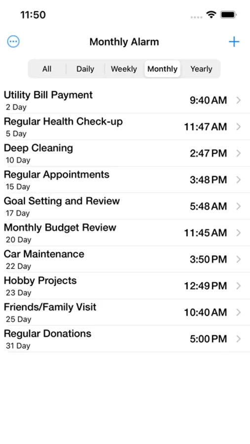 Monthly Alarm (Weekly, Yearly) Screenshots
