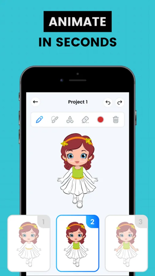 Check out your animation frame by frame or jump to the beginning or end with a tap. You’ll be creating animated videos and cartoons like a pro with FlipArt.
