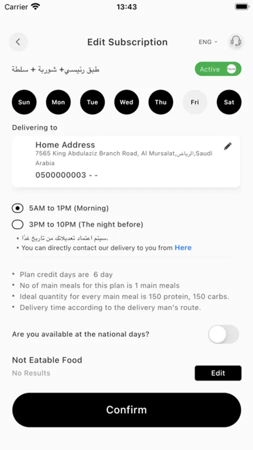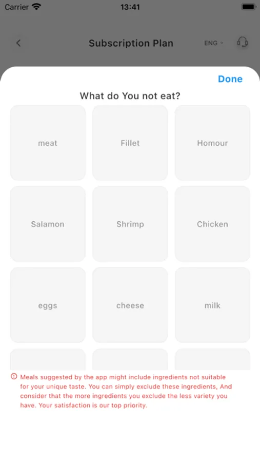 - Tailor your subscription to match your lifestyle and preferences. Choose meals based on your height, weight, workout frequency and your diet goal to get the most out of your nutrition.