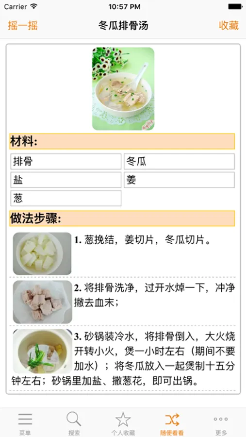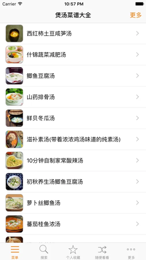 最全最流畅的煲汤菜谱大全,一次下载,所有信息离线使用。所有IOS设备通用,支持一键收藏,摇一摇随机查看,全文搜索。