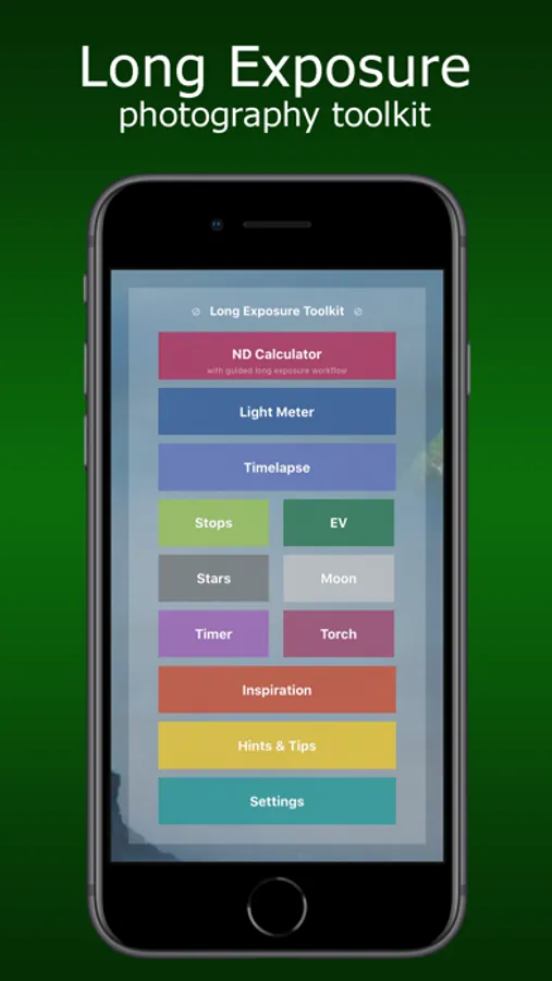 - And a library of over 70 valuable hints and tips for Long Exposure photography and for getting the most from the app