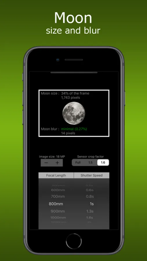 - Moon Size & Blur calculator - find the size and amount of blur of the moon based on focal length, shutter speed and sensor crop factor