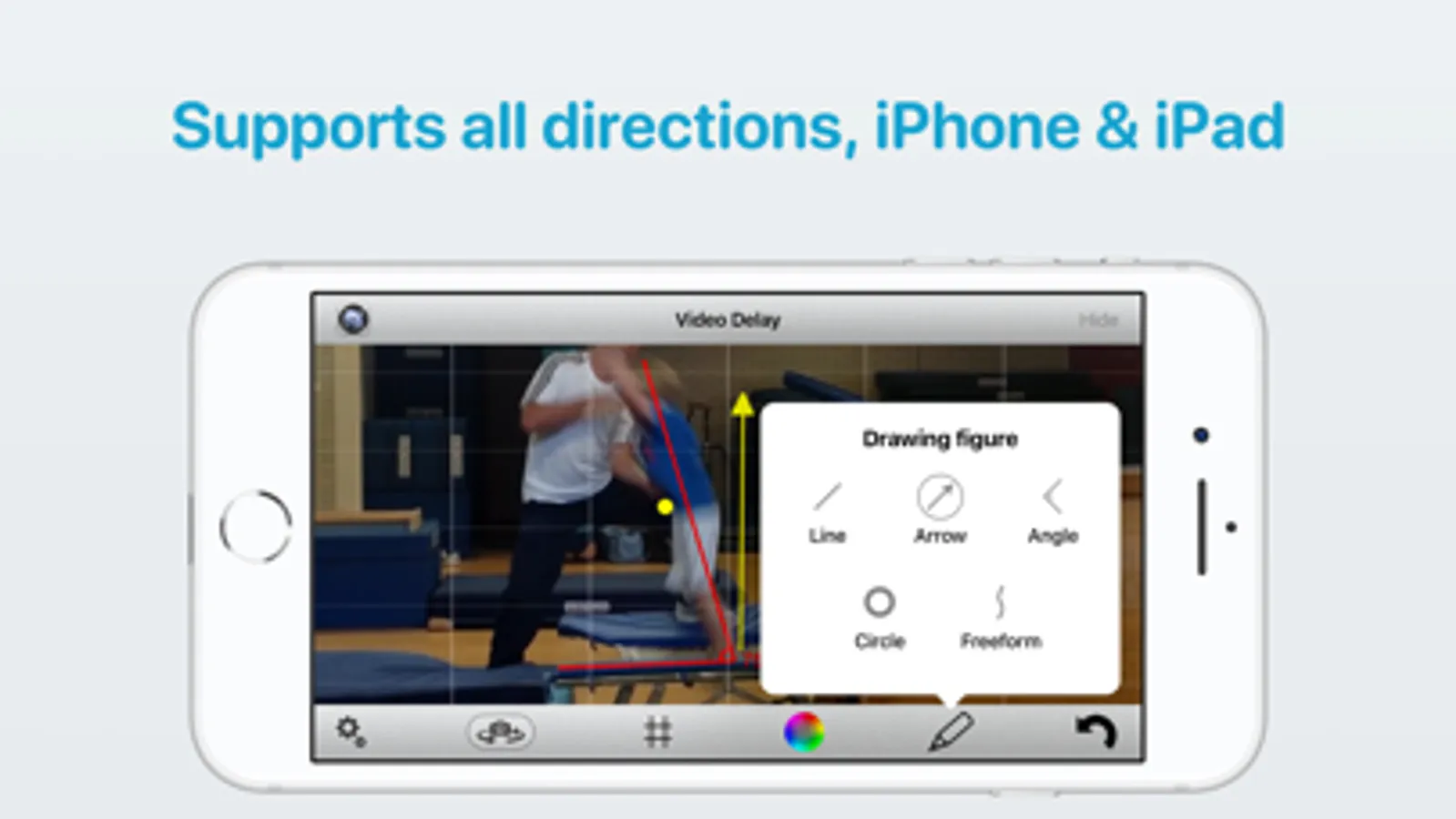 Download this App for professional video delay functionality! It even includes high-end drawing analysis tools like lines, arrows and corners with degrees.