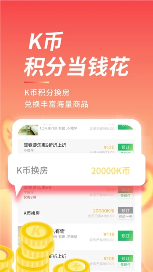 首次登录APP可获赠100元代金券;及时掌握格林旗下酒店近期资讯和优惠活动,还可玩游戏抢代金券,签到、预订、入住、点评获的K币积分奖励。