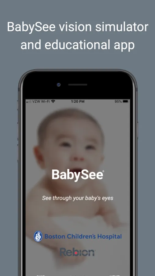 "What does my baby see?" "Can she see my face?" "Can he tell if I am smiling?" "What about colors?" As it happens, scientists have devoted years learning about how the eye and brain develop and conducted hundreds of studies learning how babies discern clarity, color, and contrast. Rebion® and Boston Children’s Hospital's Chief of Ophthalmology, David G. Hunter, MD, PhD, have worked with a scientific and engineering team to create the BabySee® infant vision simulator to bring the science of visual development in infants to life in real time.