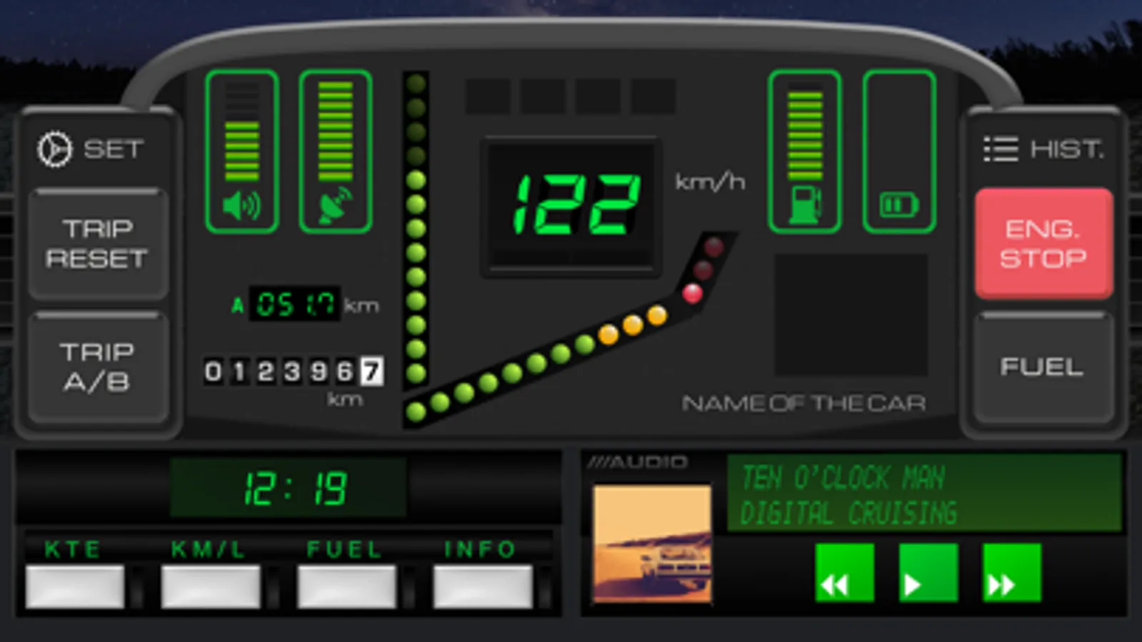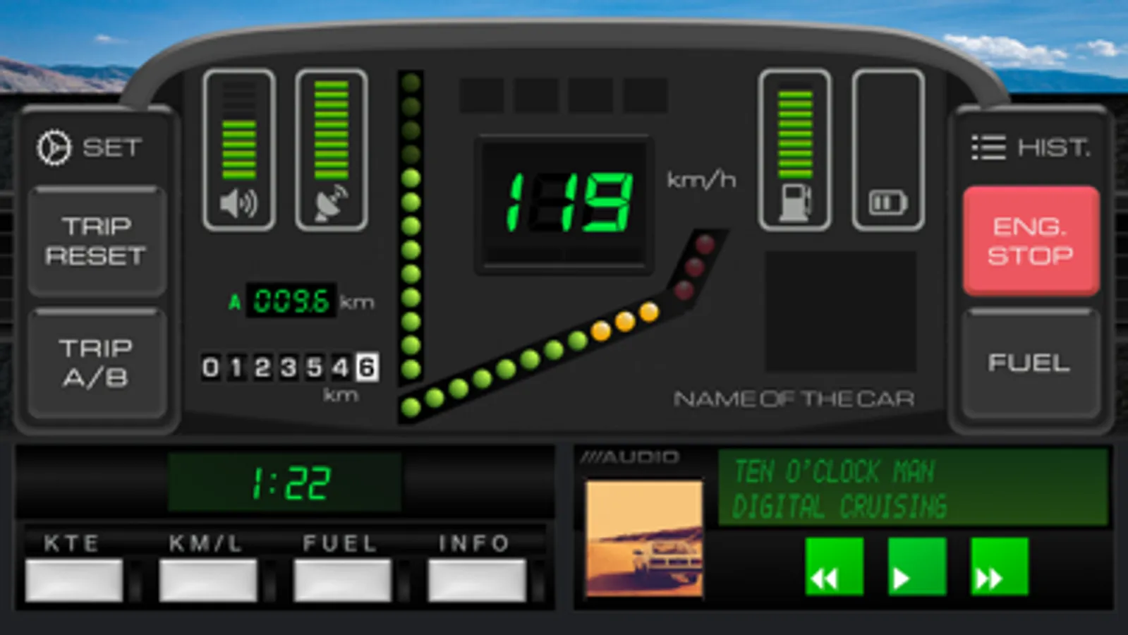 DIGITAL CRUISING is unique combination of GPS speedometer, odometer and trip meter with 80′s taste digital meter design. In addition, this app has fuel manager, music player functionality.