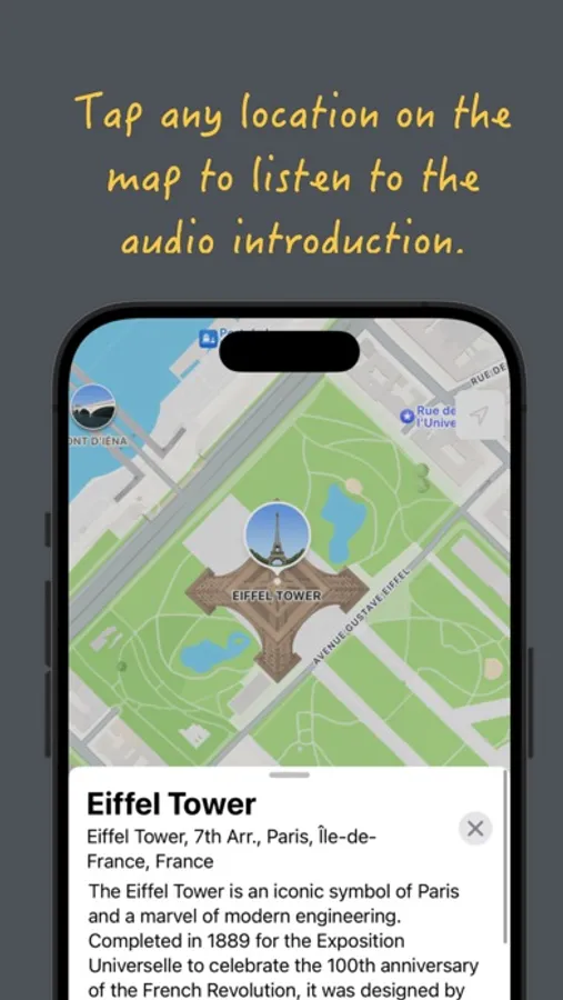 From the Louvre to a street, you can click on any place shown on Apple Maps and listen to the introduction.