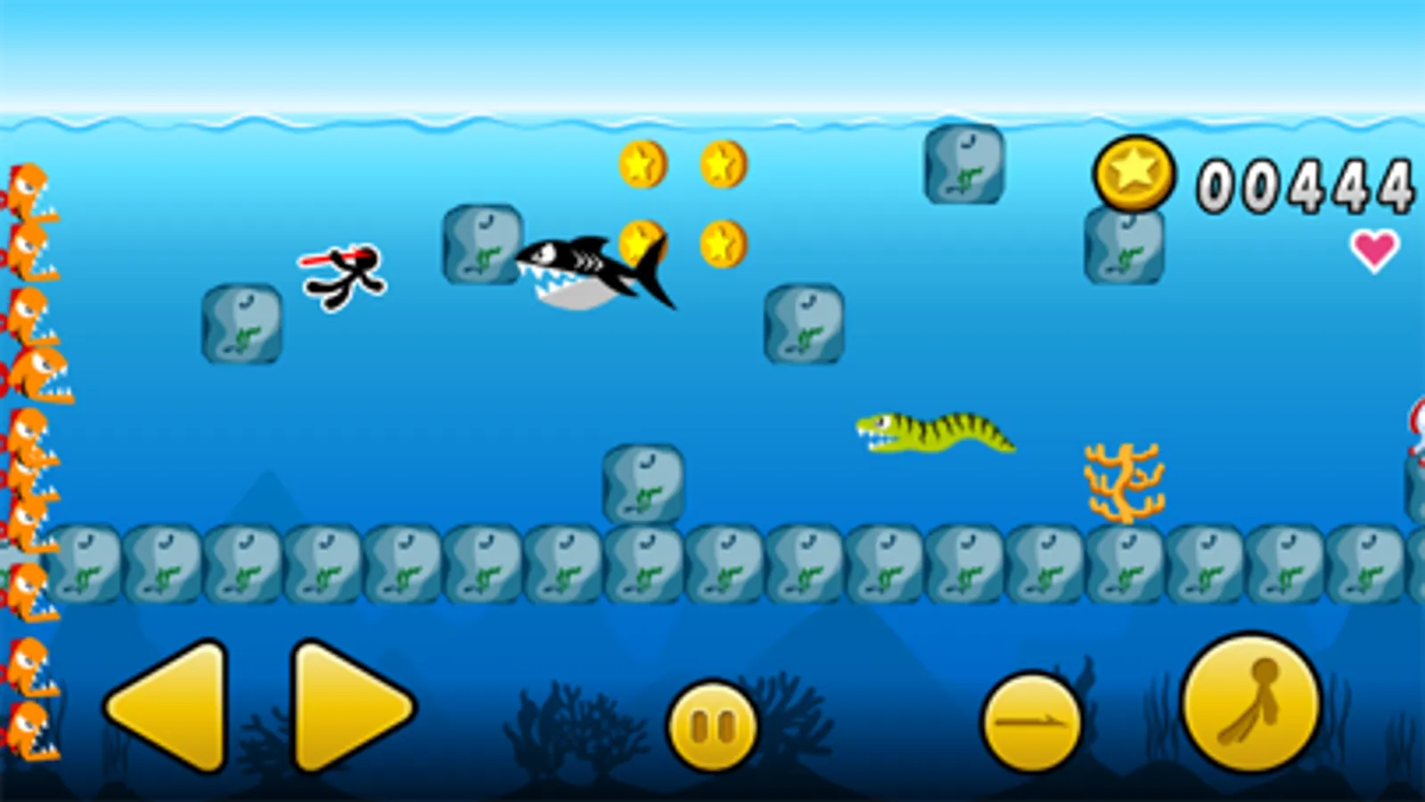 Let's take a coin to swim back and forth using the buttons on the left and right.