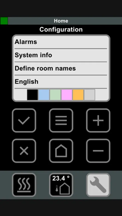 Once the app has been installed, it is possible for you to see actual temperatures, to change set points, and to check and change the mode of operation of each individual wireless room thermostat. It is also possible to change the mode of operation of the entire system with just one touch. You can name your rooms in the configuration menu to make the system very easy to view and control.