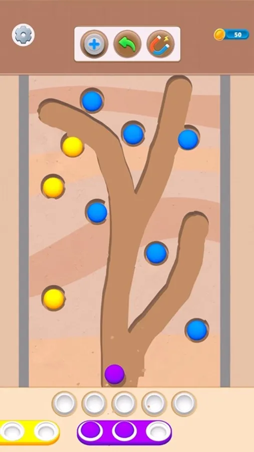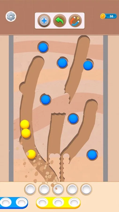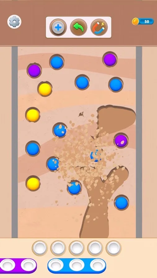 In Sandy Sort you have to dig in the sand and match the same colored balls. Be careful where you dig and match all the balls before you fill up your spare slots.