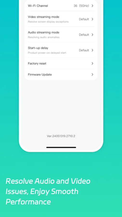 Settings Management: Includes Wi-Fi channel settings, startup delay settings, and factory reset to ensure smooth device operation.