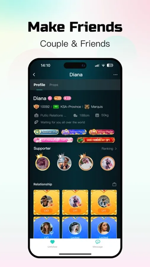 Up to 20 people voice-chat simultaneously! Express yourself with texts, emojis, and dazzling gift effects that make chats come alive.