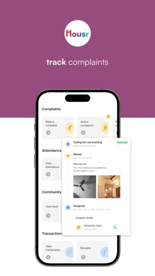 - Raise complaints | Escalate issues by adding pictures and get live updated on progress.