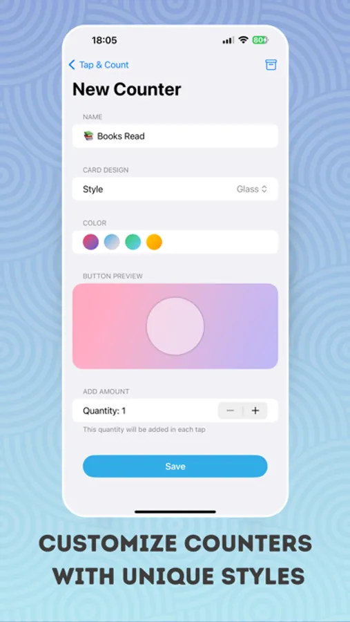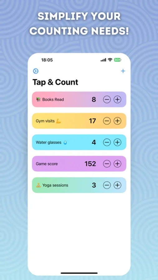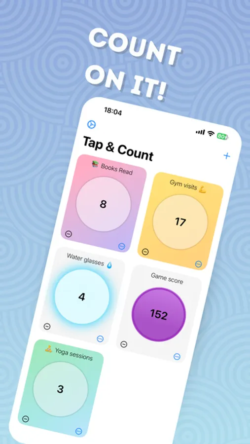 Tap & Count is your tool for tracking and managing anything that needs counting, from daily activities and habits to fitness goals, event attendance, and board game scores. Whether you're monitoring your water intake, counting your workout reps, logging your daily tasks, or keeping score in board games, Tap & Count simplifies the process with a user-friendly interface.
