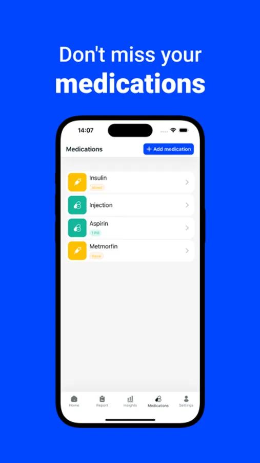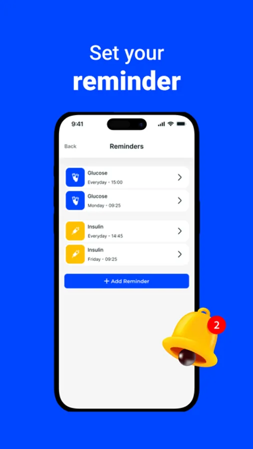 2.Custom Reminders: Set up reminders for glucose checks, medications, insulin doses, and more.
